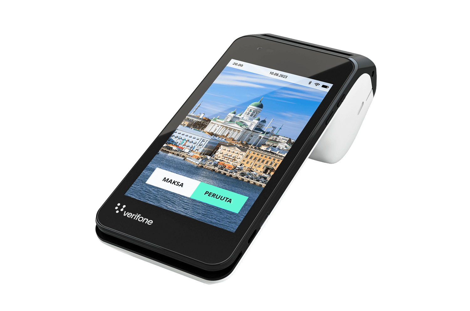 Liikkuvaan myyntiin suunniteltu kestävä Verifone CM5 (Carbon Mobile 5) kulkee kevyesti mukanasi ja sen 4G-, Wifi- ja Bluetooth-yhteyksillä hoidat maksamisen sujuvasti ajasta ja paikasta riippumatta.